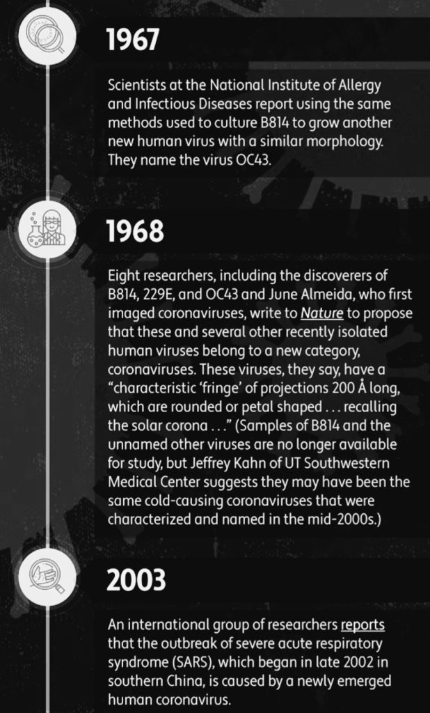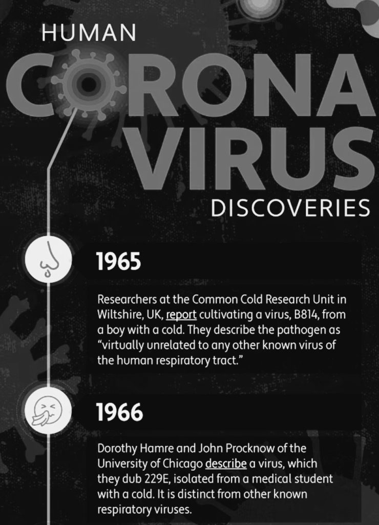 Ada 4 sub-grup utama dari virus corona yaitu: alpha, beta, gamma & delta. Coronavirus pertama kali dapat diidentifikasi pada tahun 1960’an, bukan di akhir tahun 2019 ya, jadi deh dettol antiseptik bisa nulis di label kalau produknya bisa membunuh si corona, buatan perusahaan Inggris Reckitt, jadi….siapa dulu yg percaya hoax dettol di awal pandemi COVID-19…XIXIXI…