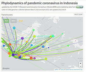 Asal muasal COVID-19 di Indonesia diketahui berdasarkan pemetaan materi genetik SARS-CoV-2 yang menggambarkan transmisi virus hingga sampai ke Indonesia. LBM Eijkman berhasil memetakan materi genetik yang menginfeksi 3 pasien COVID-19 & hasil sekuen ketiga isolat itu memiliki ID GISAID: Indonesia/JKT-EIJK2444/2020, Indonesia/JKT-EIJK0317/2020 & Indonesia/JKT-EIJK0141/2020. Ketiganya dikirim ke portal Global Initiative on Sharing All Influenza Data (GISAID.org) & dapat dilihat semua orang.
