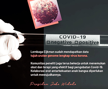 LEMBAGA BIOLOGI MOLEKULER EIJKMAN untuk pertama kalinya berhasil menyelesaikan pemetaan sekuen asam nukleat(RNA) penyusun Genome Sars-Cov-2. Menggunakan alat Next Generation Sequencing (NGS) di Pusat Genome Nasional LBM Eijkman. Ini adalah data sekuens lengkap pertama Sars-Cov-2 dari Indonesia & telah diunggah ke pusat data GISAID yang berbagi lebih dari 16.000 data virus Corona dari seluruh dunia.